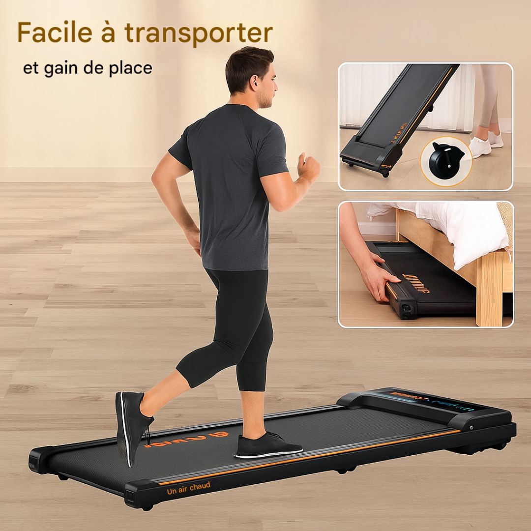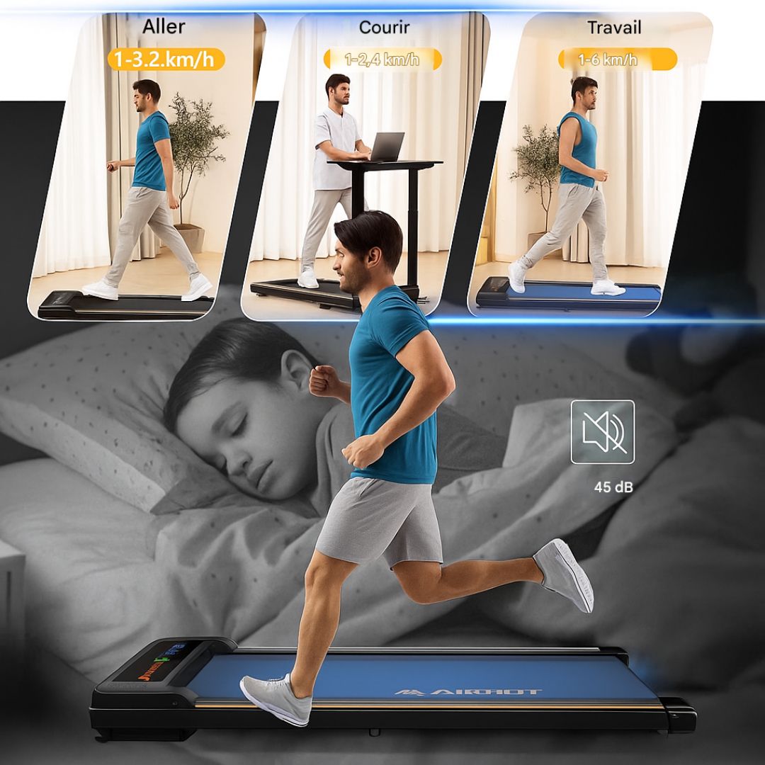 - 【Conception sans installation】Gagnez de l'espace et du temps grâce à la conception sans installation et à la construction compacte et pliable qui facilitent le rangement et le transport du tapis de course pliable AIRHOT 2 en 1. Ce tapis roulant est parfait pour la maison, l'appartement et le bureau. Il est livré assemblé et peut être utilisé immédiatement après le déballage.