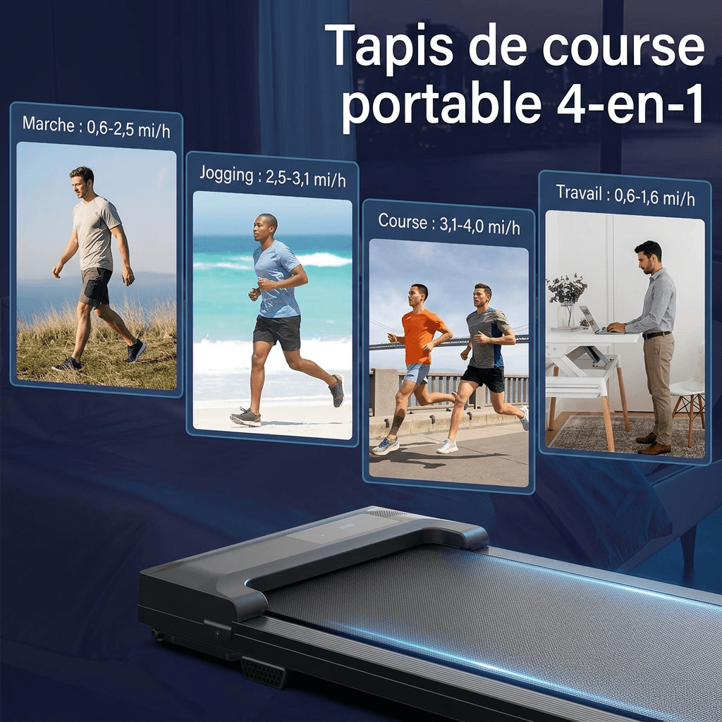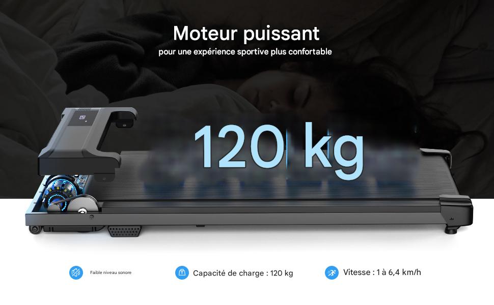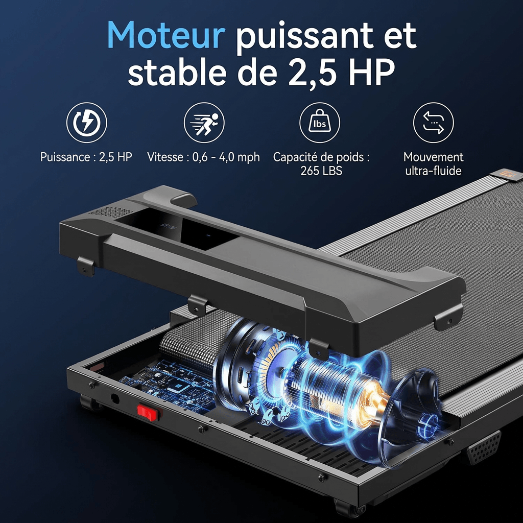 Ce walking pad est équipé d’un moteur puissant avec une vitesse réglable de 0,6 à 4,0 mph. Sa structure en acier réduit les vibrations et le bruit 🔇, idéale pour une utilisation à la maison 🏠 ou au bureau 🧑💻.