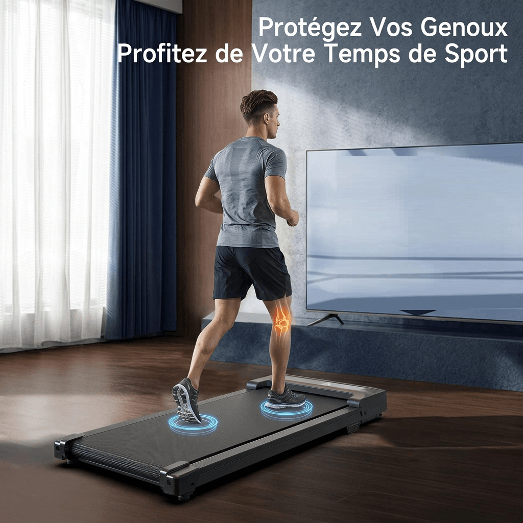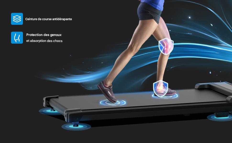Le tapis de course dispose d’une bande de course antidérapante, d’amortisseurs de base et d’un système de coussinage en nid d’abeille 🐝. Ces éléments aident à réduire l’impact sur les pieds et assurent une bonne adhérence pendant l’utilisation.
